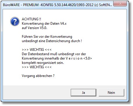 Zwingend notwendig ist hier eine vorherige Datensicherung sowie die komplette Reorganisierung des Datenbestands der Version 5.0!