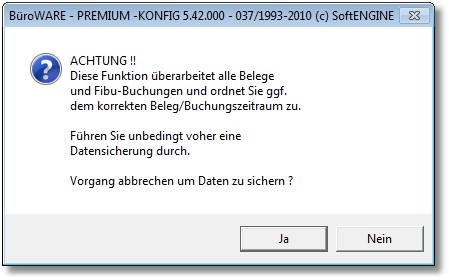 Mit dieser Funktion werden alle Belege der Warenwirtschaft und die Buchungen der Finanzbuchhaltung überarbeitet und ggf. dem korrekten Zeitraum zugeordnet.