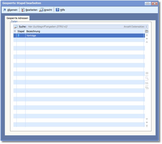 Gesperrte Stapel bearbeiten Hier wird ein Dialogfenster geöffnet, in dem alle Buchungsstapel in einer Tabelle angezeigt werden, die für die Buchung gesperrt sind bzw. nicht in der Stapelauswahl angezeigt werden.