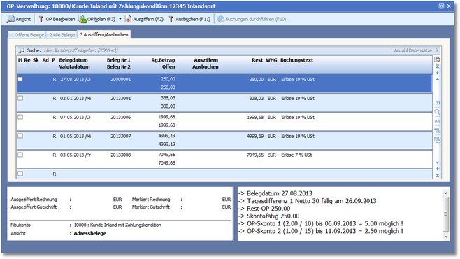 << Hier KLicken um eine Inhaltsübersicht anzuzeigen >> Navigation: Finanzbuchhaltung > OP-Verwaltung > Offene Posten bearbeiten > Adressbezogene OP-Verwaltung > Offene Posten ausziffern > Adressbeziehungen miteinander ausziffern |