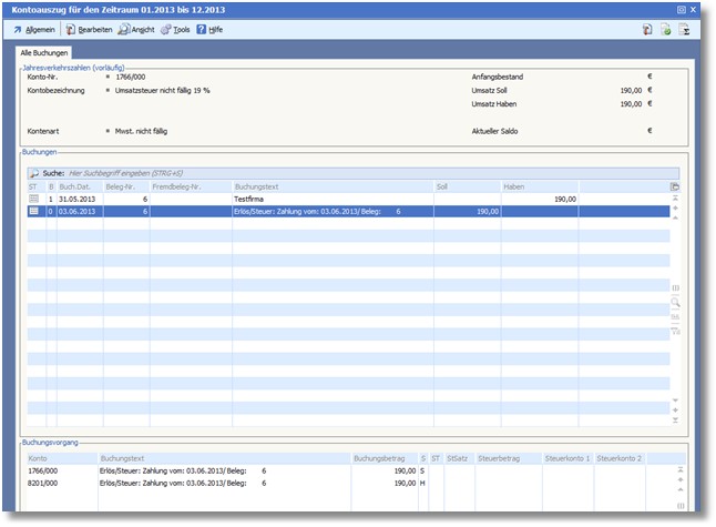 Abb. USt-Kontennachweis mit Buchungsnachweis