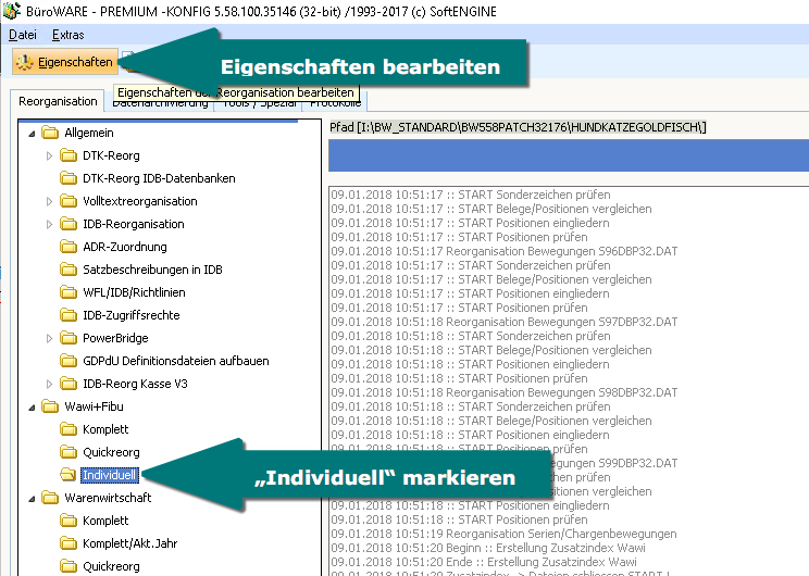 << Hier KLicken um eine Inhaltsübersicht anzuzeigen >> Navigation: Jahreswechsel in der BüroWARE > Jahreswechsel durchführen > Vorbereitende Arbeiten für den Jahreswechsel > Vorbereitende Reorganisation |