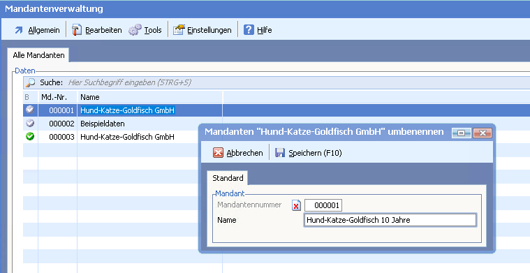 Benennen Sie den Mandanten möglichst um, damit klar ist, welcher der Mandant für den "Rückblick" und welcher der aktuelle Mandant ist.