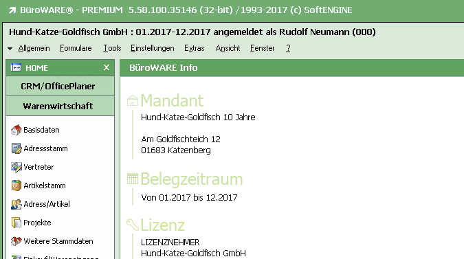 Starten Sie die BüroWARE erneut und öffnen Sie die Mandantenverwaltung.