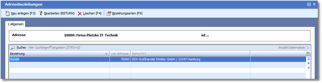 Mit [F3] öffnen Sie den Dialog "Adressbeziehungen erfassen/ändern".
