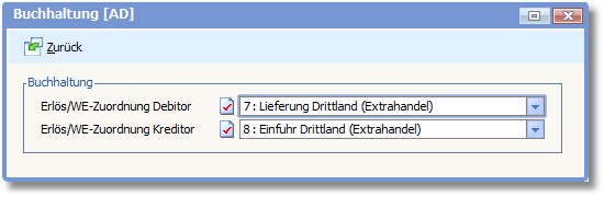 << Hier KLicken um eine Inhaltsübersicht anzuzeigen >> Navigation: OfficePlaner > Stammdaten > Basisdaten > Länderverwaltung > Länder erfassen/ändern > Die Karteikarte "Standard" > Buchhaltung |