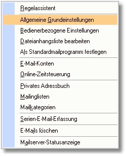 1. Wählen Sie in der Menüleiste des Mailsystems den Menüpunkt "Extras > Allgemeine Grundeinstellungen".