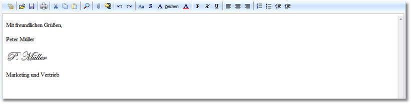 Für die Texteingabe und die Textformatierung (HTML) stehen weitere gängige Textfunktionen zur Verfügung, die über die Symbolleiste aufgerufen werden können.