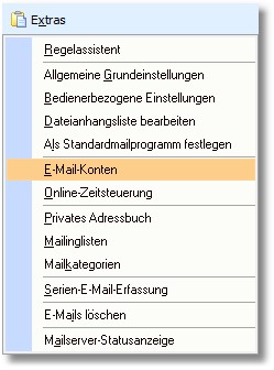 2. Klicken Sie dann auf den Menüpunkt "E-Mailkonten".