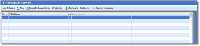 Das Programm öffnet den Tabellendialog "E-Mail-Konten-Auswahl".