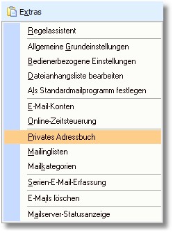 1. Wählen Sie in der Menüleiste des Mailsystems den Menüpunkt "Extras > Privates Adressbuch".