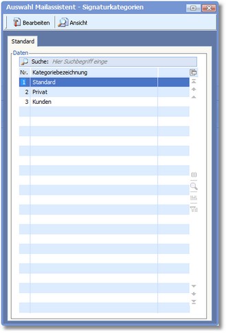 << Hier KLicken um eine Inhaltsübersicht anzuzeigen >> Navigation: OfficePlaner > Mailsystem > Mail einrichten > E-Mail-Assistent - Extras > Bedienerbezogene Einstellungen > Die Karteikarte "Signatur" > Signatur erfassen/ändern > Signaturkategorien |
