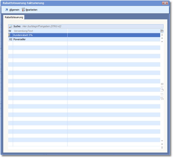 Das Programm öffnet die Rabattsteuerung Fakturierung.