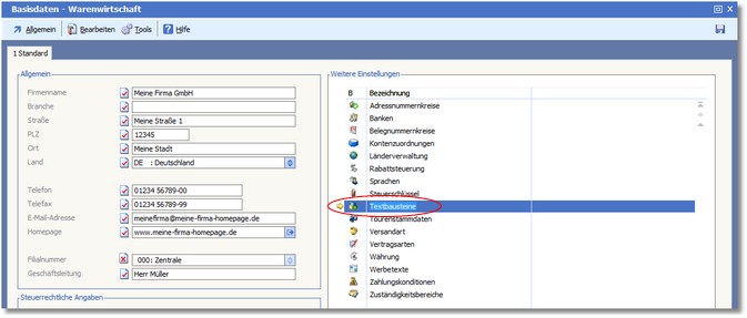 Navigation:  Warenwirtschaft > Stammdaten > Basisdaten > Textbausteine >