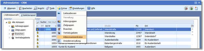 1. In der Adressauswahltabelle klicken Sie auf "Extras > Adressnummernkreise".