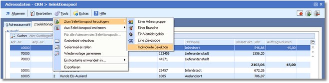 << Hier KLicken um eine Inhaltsübersicht anzuzeigen >> Navigation: OfficePlaner > Stammdaten > Adressstamm > Selektionspool > Individuelle Selektion |