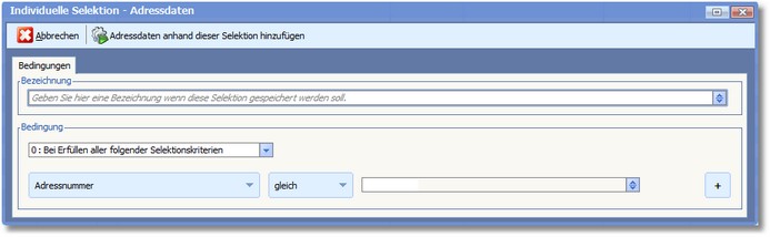 Der Dialog "Individuelle Selektion - Adressdaten" wird geöffnet.