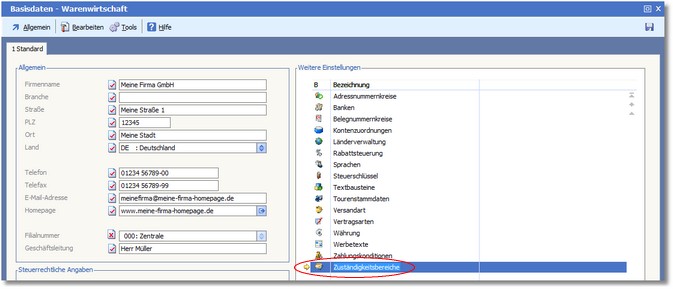 << Hier KLicken um eine Inhaltsübersicht anzuzeigen >> Navigation: Warenwirtschaft > Stammdaten > Basisdaten > Zuständigkeitsbereiche |