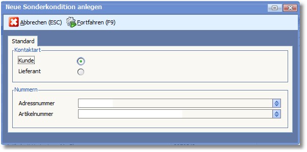 Der Dialog "Neue Sonderkondition anlegen" wird geöffnet.