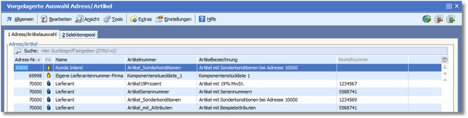 Das Programm öffnet die Übersicht aller zu diesem Artikel hinterlegten Konditionen (Adress/Artikel).