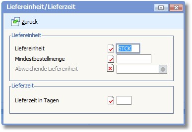 << Hier KLicken um eine Inhaltsübersicht anzuzeigen >> Navigation: Warenwirtschaft > Stammdaten > Konditionen > Adress/Artikel > Adress/Artikel bearbeiten - Menüleiste > Liefereinheit/Lieferzeit |