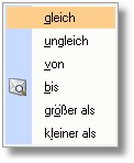 2. Im nächsten Schritt kann über den Button <gleich> nun der Vergleichsoperator ausgewählt werden. Die verfügbaren Operatoren sind abhängig vom Datentyp des zuvor gewählten Feldes.