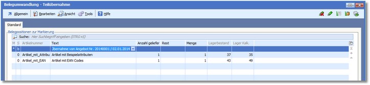 Navigation:  Warenwirtschaft > Belegbearbeitung > Wandlung, Teilwandlung und Duplikation > Wandlung/Duplikation in der Belegtabelle > Teilwandlung >