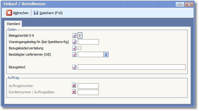 << Hier KLicken um eine Inhaltsübersicht anzuzeigen >> Navigation: Warenwirtschaft > Belegbearbeitung > Verkauf/Warenausgang > Positionserfassung Warenausgang > Positionserfassung - Menüleiste > Einkauf/Bestellwesen |