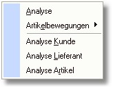 Über den Button <Auswertung> oder mit der Taste [RETURN] öffnet sich ein Popup-Menü mit folgenden Analysemöglichkeiten: