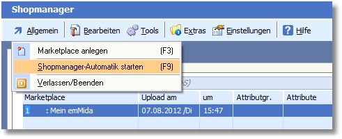 1. Drücken Sie [F9] oder klicken Sie im Menü des Shopmanagers auf "Allgemein > Shopmanager-Automatik starten".