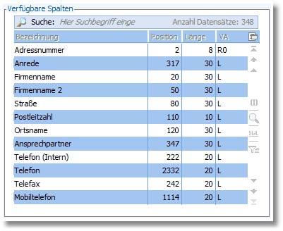 In dieser Tabelle steht zum Auffinden eines Feldes, die gewohnte Volltextsuche mit STRG+S (WEBWARE: STRG+F) zur Verfügung.