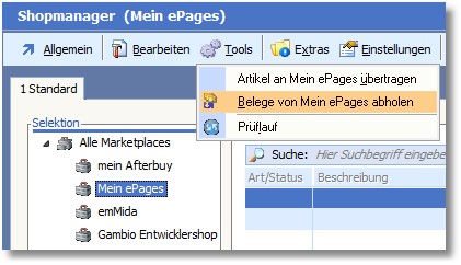 Navigation:  Warenwirtschaft > Extras > Shopmanager > Marketplaces > ePages > Belegdownload >