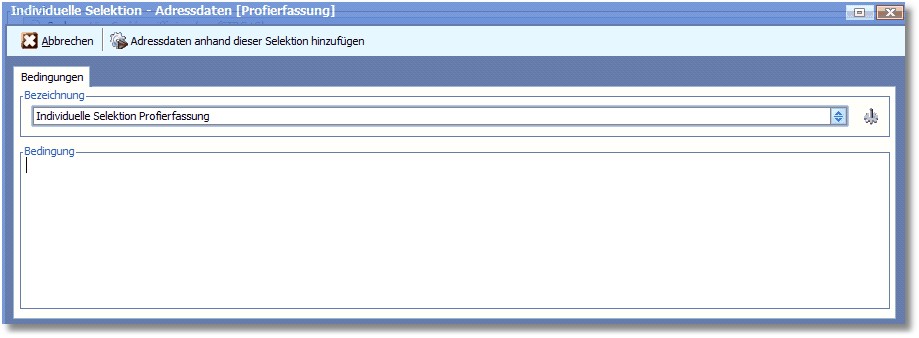 Die Profierfassung des Selektionspools bietet die Möglichkeit, innerhalb der Individuellen Selektion komplexe Selektionen mit &, # und sogar & und # Verknüpfungen in einer Zeile bis hin zu komplexen Klammerauflösungen durchzuführen.