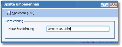 Wenn sämtliche Spalte auf die gewünschten Namen verändert wurden, können alle Änderungen entweder über den Menüeintrag "Allgemein – Speichern [F10]" oder mit dem Quicktoolbutton