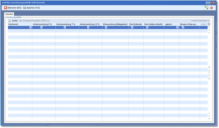 Hier wird die Zuweisung der Subchannels in der BüroWARE angezeigt und erfasst.