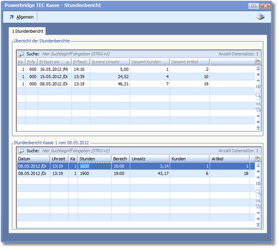 << Hier KLicken um eine Inhaltsübersicht anzuzeigen >> Navigation: BüroWARE Powerbridge > TEC-Kassenschnittstelle > Stundenbericht |